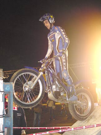 Una vez acabada la prueba, mientras se preparaba el piloto linares "Juanfra" con su mochilero el simpatiquísimo Lara "la libélula de graná", para que no se enfriara el ambiente nos deleitó Jordi Pascuet con unos caballitos y unas espectaculares derrapadas que desde luego demuestran el porqué está tan arriba en el campeonato mundial de trial.