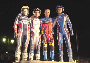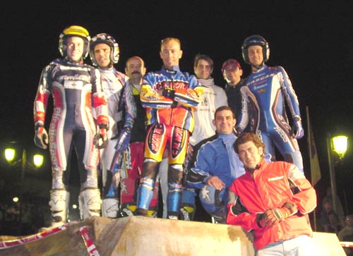 Una vez terminada la exhibición, el público agradecido como nadie, hizo varias veces la ola, donde el sin par piloto de Gas Gas (Jordi Pascuet), hizo el gesto de intentar pillar la ola corriendo con su moto, y una vez alcanzada, la siguió con una rueda dando un espectacular looping a lo largo de dos vueltas seguidas. Todo un riesgo, puesto que tenía que sortear las zonas y seguir con la rueda levantada todo el circuito que él mismo se trazó.
