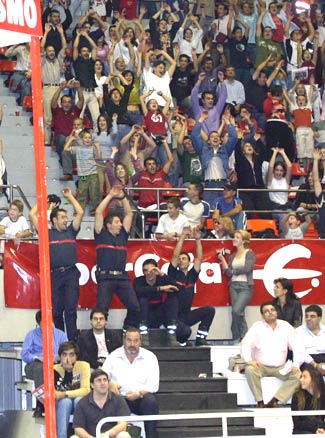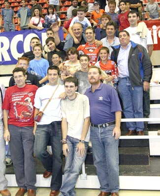 Los de la peña Raga de Navarra-Rioja animando a tope