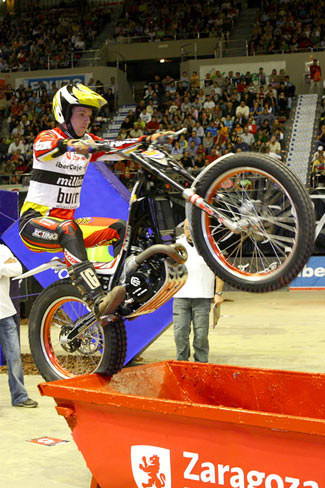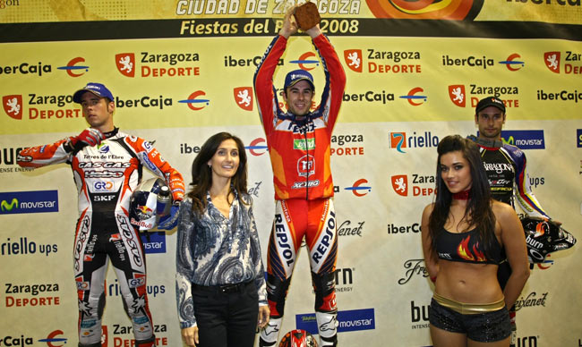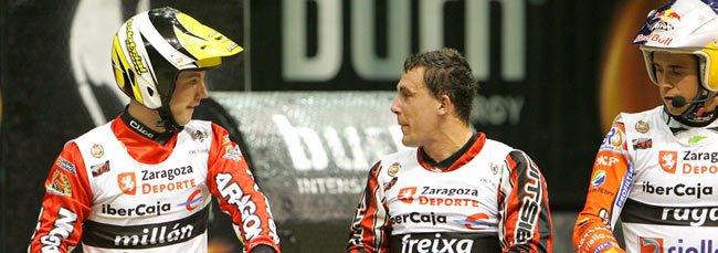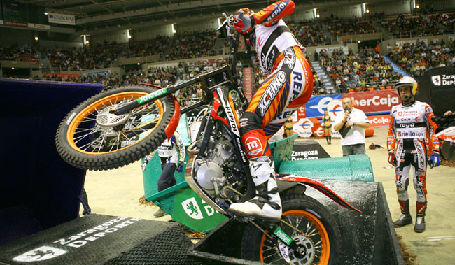 Así, al igual que sucedió en la prueba inaugural el pasado mes de Junio los tres han mostrado un excelente nivel llegando hasta la última zona con tan solo un punto de diferencia cada uno, Bou con 9, Raga con 10 y Cabestany con 11. Ninguno de ellos ha penalizado en la prueba final; la catarata; con lo que Toni Bou se adjudicaba el primer Indoor de la temporada apenas quince días después de revalidar su título mundial de Trial Outdoor. Por tanto res pilotos separados por un sólo punto, por lo que la tensión ha sido máxima haciendo de este indoor de Zaragoza un espectáculo muy emocionante.