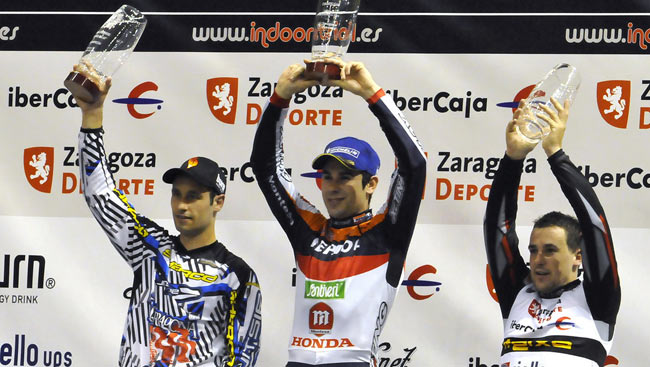 Por otro lado, destacó también en Zaragoza la exhibición en el intermedio del piloto de Biketrial Abel Mustieles. El de Caspe consiguió levantar al público zaragozano de sus asientos gracias a su absoluto dominio de la bicicleta. Mustieles incluso recibió los aplausos y felicitaciones de sus colegas de la moto. A sus 18 años, este piloto aragonés ha sido recientemente proclamado Campeón del Mundo de su especialidad en Sydney (Australia).
