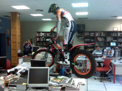 Tras la presentación del trial, Toni Bou visitaba la redacción del periódico "Heraldo de Aragón".