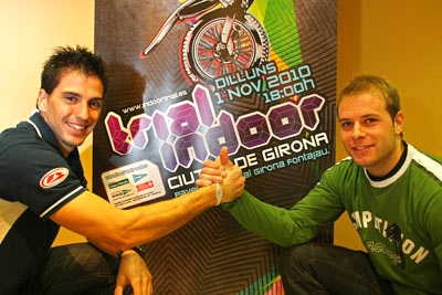 Los dos pilotos gerundenses del Campeonato de España de Trial Indoor, Jeroni Fajardo y Dani Oliveras, han ejercido de embajadores de la prueba que se celebra en su ciudad; la segunda dentro del certamen 2010.