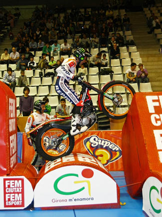 Bou, que ya venció en la primera cita, la de Zaragoza, ha vuelto a imponerse hoy en el Pabellón Fontajau de Girona ante cerca de cuatro mil espectadores que han aclamado sus acrobacias y las del resto de pilotos, algo que llevan haciendo fielmente desde hace XXIV ediciones en una prueba que ya es todo un clásico en las Fiestas de San Narciso. Bou volvió a hacer honor a su condición de pentacampeón del mundo de trial en recinto cerrado, en esta ocasión sobre unas zonas de notable dificultad técnica. Obtuvo la puntación más baja en la primera vuelta (4 puntos) y en el segundo giro empezó estableciendo diferencias en la primera de las seis zonas individuales al ser el único de los tres finalistas que conseguía superarla, repitiendo la jugada en el quinto y penúltimo obstáculo y asegurándose así en él esta nueva victoria.