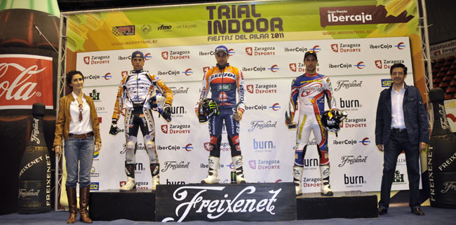 El Campeonato de España de Trial Indoor 2011 arrancó en Zaragoza con la victoria del pentacampeón del Mundo Toni Bou y la asistencia de miles de fieles aficionados que, como cada año, acuden a la que ya es una cita obligada del calendario de las Fiestas del Pilar que vive estos días la ciudad aragonesa.