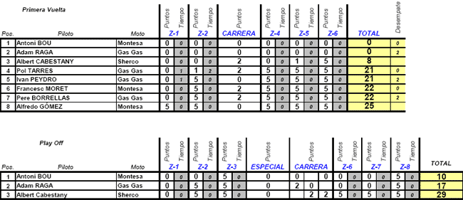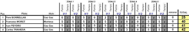 Los seis pilotos convocados han sido Pere Borrellas (Gas Gas), Francesc Moret (Montesa), Iván Peydro (Gas Gas), y Carles Traviesa (Gas Gas), por tanto uno menos que el año pasado. Todos ellos han tenido aque enfrentarse a cinco zonas en dos vueltas.