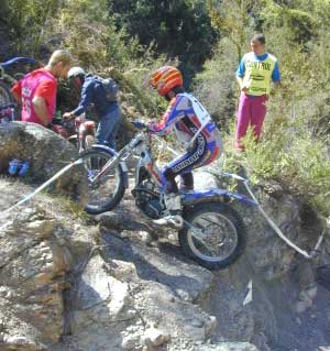 Como veis, el trial se presentaba sencillo, por lo que había que andar con mucho ojo para no cometer ni un fallo, pues estos se pagarían caros. Jeroni Fajardo cometía su primer error en la zona nueve, pero no volvería a fallar, con lo cual finalizaba el trial con tan sólo un punto. Sólo Bou podría ganarle si no cometía ni un fallo en el segundo giro y además terminaba en menos tiempo, pero sus esperanzas se desvanecían ya en la primera zona, donde marcaba un punto, con lo que la victoria era para Fajardo. Pero peor aún fue el fallo en la zona cuatro donde cometía un imperdonable fiasco, y después sumaba otros dos puntos sueltos. De esta forma terminaba con 9 puntos y ello podría hacerle peligrar incluso un puesto en el podio.
