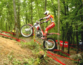 Dani comenzó el trial muy concentrado y tranquilo, con las ideas muy claras de como debía afrontar las zonas y especialmente a los controles. En la primera zona consiguió cero dejando un pie en la dos y otro en la tres, en la cuarta llegaba el primer susto, Dani realizaba la zona perfectamente y a llegar al doble escalón de salida que patinaba bastante intentó hacerlo de la forma más suave posible, tan suave lo hizo que caló la moto y al apoyar el pie en el suelo el cinco fue inevitable.