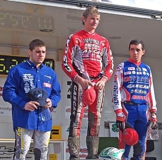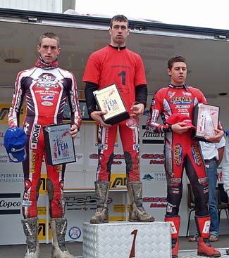 Podio de Junior 125 con Oliveras vencedor
