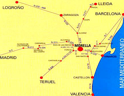 a escasos tres kilometros de la ciudad de Morella en la carretera con direccion