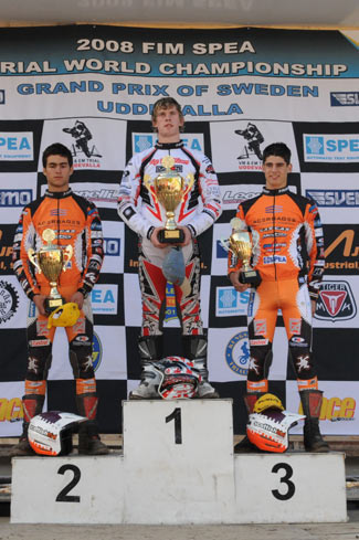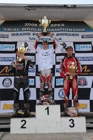 Su compatriota Alexz Wigg (Montesa) estaba segundo con 18, con uno más encontramos al finlandés Henri Himmanen (Beta), con 21 a nuestro Alfredo Gómez (Montesa) enpatado con el checo Martin Kroustek (Beta), y con 25 al líder del mundial Juvenil 125, el francés Loris Gubian (Sherco) con 25.