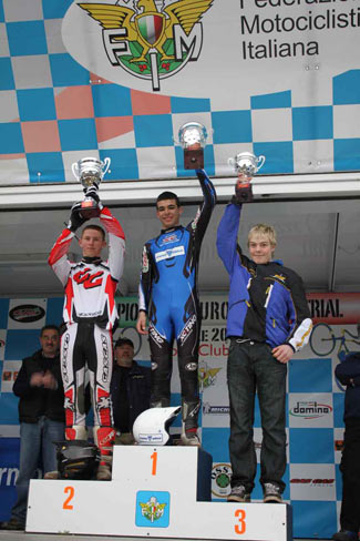 Magnífica sorpresa también la del jovencísimo español Jaime Busto (Gas Gas), que se ha impuesto en la categoría Inter por delante del francés Loic Monini (Gas Gas) y del italiano Matteo Mazzocco (Beta).