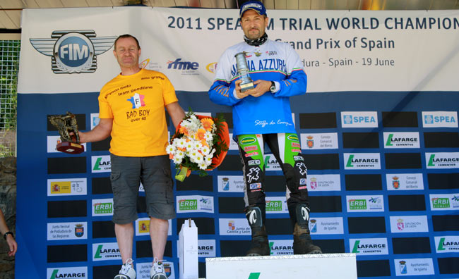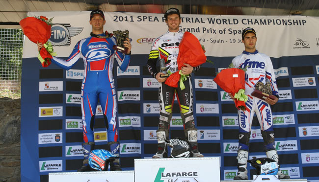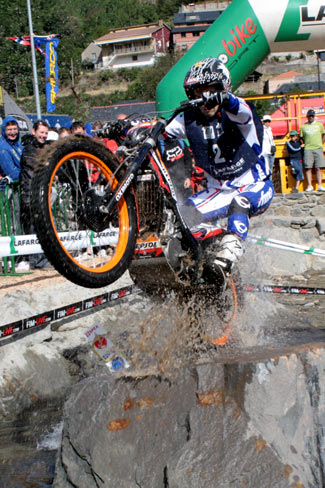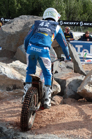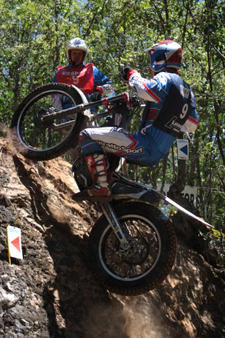 A la diez menos cuarto comenzaba la competición con la salida de los primeros participantes de la categoría Inter y de Veteranos máyores de 4 años, lamentablemente con sólo 2 participantes cada uno, ya que el diseño de las zonas del nacional, europeo y mundial, con constantes y exigentes paradas y cambios pese a ser del nivel inferior, no anima demasiado a los pilotos a participar, en la línea a lo que se comentaba en el reportaje sobre la crisis del trial. Seguidamente salían los 11 juniors con sólo dos españoles, los voluntariosos hermanos Martín, y por último los 21 pilotos de la categoría absoluta, con 6 pilotos españoles.