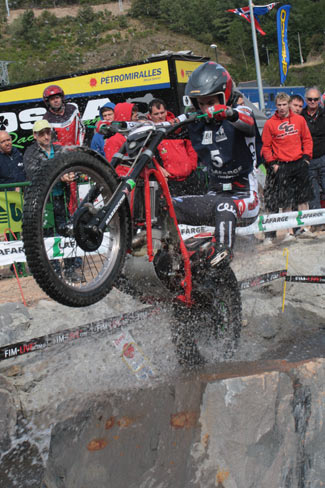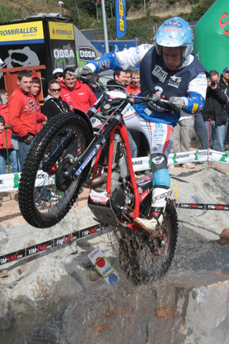 Desde el principio comenzaban a definirse las posiciones, siendo la peor suerte inicial para Alfredo Gómez que cometía un fiasco en la primera zona cuando al afrontar un fuerte escalón sobre un tronco veía como la moto no respondía. Inmediatamente se dirigía al camión de Montesa, donde se detectaba el problema, el filtro de aire se había llenado de agua en la primera parte de la zona, con un importante vadeo del río artificial. Desde ahí Gómez trataba de recuperar, pero el británico Challoner (Beta) estaba realmente fuerte destacándose del resto, completando una primera vuelta con sólo 3 puntos. Francesc Moret (Montesa) se situaba segundo con 7 puntos, y con dos más le seguía el francés Benoit Dagnicourt (Beta).