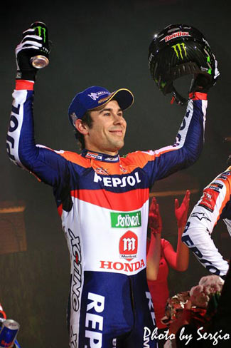 La mala noticia la fuerte caida sufrida por Albert Cabestany (Sherco) en la primera vuelta, que recibió un golpe en la cara y tuvo que verse obligado a la retirada para su traslado al hospital. Albert ha sufrido una fuerte contusión en la mandíbula que le ha provocado un corte bastante importante en la parte inferior de la barbilla y 5 muelas rotas. Desde aquí le deseamos a Albert la más pronta recuperación posible y que podamos verle al cien por cien en el trial indoor de Barcelona, que se disputa el próximo domingo.