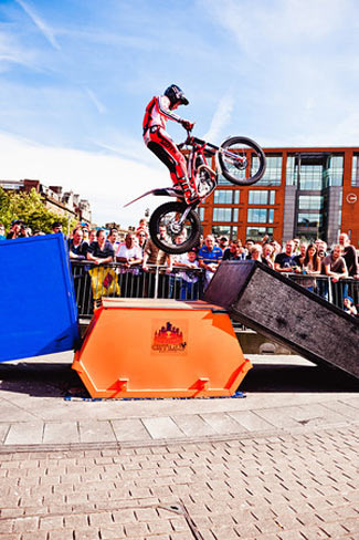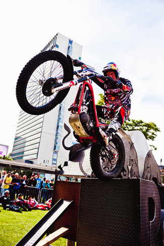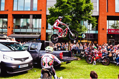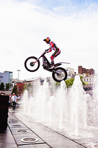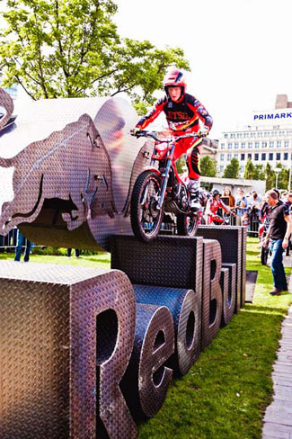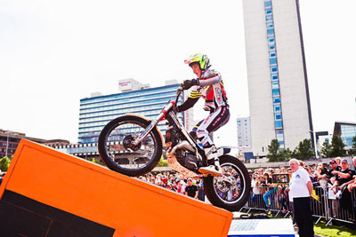El trial urbano se ha mostrado un gran éxito para difundir el deporte del trial entreel público general, y con esta primera edición del Manchester Red Bull City Trial se ha celebrado por primera vez un trial de este tipo en el Reino Unido. El primer Manchester Red Bull City Trial ha sido un gran éxito en el que varios miles de espectadores han disfrutado de una espectacular exhibición de habilidad y valentía en los jardines de Picadilly, en la ciudad británica de Manchester. Bajo un brillante sol la multitud estaba fascinada y entregada después de tres fases de acción trialera y dinámica, con la emoción añadida de no decidirse el ganador del evento hasta la última zona del día en un apretadísimo final. Finalmente, y después de una lucha titánica durante todo el día entre los dos equipos participantes, fue el equipo Lampkin, capitaneado por Dougie y completado por Jack Sheppard y Sam Haslam quien se haría con la victoria en la última zona de agua. Por tan solo una diferencia de apenas unos segundos derrotaron al equipo de Adam Raga a pesar de los buenos esfuerzos del número dos del mundo y sus compañeros de equipo: Alexz Wigg y Bradley Cox.