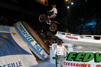 Después del espectáculo de trial freestyle a cargo de Christophe Bruand y "Picas" Johan, la segunda ronda se ponía más complicada con la llegada de zonas más difíciles. Toni Bou, demostraba más ganas que nunca y luchó en cada zona logrando remontar hasta colocarse un punto por delante de Raga justo antes de la última zona. Jeroni Fajardo se mantenía tras ellos pero muy cerca, a sólo dos puntos, y no demasiado lejos les seguían Fujinami y Gubian, quedando este último eliminado. La final sería otra vez un duelo entre Bou y Raga al que seguía amenazando Fajardo, pero Bou lograba poco a poco tomar ventaja y de este modo Bou lograba finalmente la victoria en un trial lleno de emoción, mientras Raga era segundo y Fajardo completaba el podio por delante de Fujinami, ya bastante más alejado. Marsella, Capital Europea de la Cultura 2013, fue capaz de demostrar esa noche su compromiso con el deporte y en especial con la la moto y el trial, ¡bravo! El próximo indoor en Francia con las principales figuras internacionales será el de Toulouse el 8 de febrero.