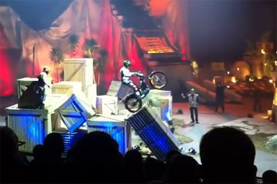 Y es que el especialista Bernard Estripeau volvió a brillar por el ézito conseguido, una puesta en escena cuya temática era "Indiana Jones", con antorchas, palmeras, cajas misteriosas y una cascada de más de 15 metros de altura. Pero nada mejor que las imágenes del video que os ofrecemos al final del reportaje para poder apreciarlo. En lo deportivo Toni Bou (Montesa) se llevó la victoria con un total de 7 puntos, pero de cerca le siguió Jeroni Fajardo (Beta) con 10, completando el podio Takahisa Fujinami (Montesa) tras obtener ventaja en el desempate con Adam Raga (Gas Gas) que se quedaba fuera del podio. El británico Jack Challoner (Beta) era quinto con 24 puntos y tras él se situaba el francés Alexandre Ferrer con 30. El panorama trialero sigue centrado en los Indoor y tan sólo dos días después de Toulouse llega el turno del Indoor de Barcelona, segunda cita del Mundial Indoor X-Trial tras la disputada en Sheffield, y de la cual podéis ver un completo reportaje previo actualizado, pinchando aquí. Será este domingo 9 de febrero. Videos: