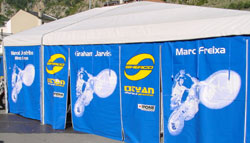 montaje en la carpa de los de las motos azules, otra novedad son los boxes separados