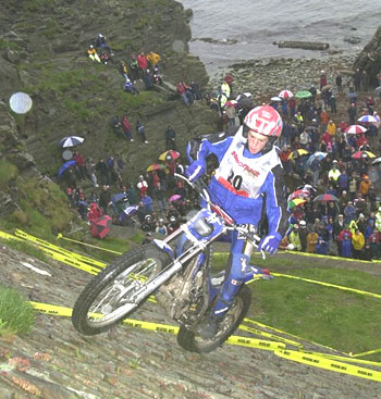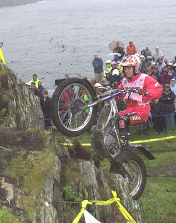 El tiempo se ponía a favor de los pilotos locales, el cielo se presentaba cubierto y la lluvia embarraba las costas de Douglas, además el viento y el frío hacían que el trial transcurriese en un clima típicamente británico. Los camiones de los equipos llegaban directos desde Escocia y de nuevo el "circus" del mundial de trial se ponía en marcha. Las zonas que componían el recorrido estaban situadas junto a la playa, compuestas en su mayoría de grandes rocas negras con crestas y fuertes escalones, aunque también había otros grupos de zonas en las que predominaba el barro, todas ellas estaban realmente resbaladizas.