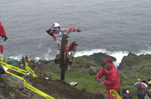 La lluvia no había hecho acto de presencia cuando los pilotos tomaron la salida, pero no se hería esperar y llegaría después con fuerza, embarrando aún más las complicadas y resbaladizas zonas de la costa. Lampkin estaba como líder destacado de la general y Cabestany lograba el segundo puesto por delante del japonés Takahisha Fujinami, el mundial está emocionante, pero no tanto como nos imaginábamos ¿cuando batirá alguien a Lampkin? La verdad es que hasta ahora las cuatro mangas disputadas le han sido favorables, con lluvia y terreno mojado muy resbaladizo, pero Lampkin está ahí, y sigue siendo un muro difícil de franquear.
