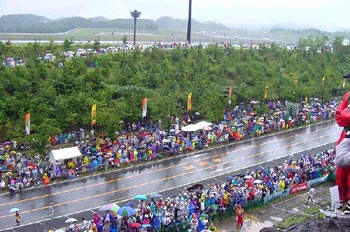 Como ejemplo ya tuvisteis en las noticias previas de Todotrial la noticia de la webcam o de la página web sobre el trial, y si habéis visto los videos de temporadas anteriores, ya sabéis que el G.P. de Japón es especial. Y es que realmente así deberían ser las cosas en Europa, pero claro nosotros estamos acostumbrados a la chapuza y cachondeo, y lo de la "pela" ya no digamos, si hay que pagar para entrar a ver un trial, por muy de alto nivel que sea...... no sé, no sé. De todas maneras a ver si los aficionados nos vamos modernizando, haciendo que este deporte sea tenido en cuenta. Para el año que viene hay rumores de que se intentará hacer algo parecido en cierta capital europea que nos pilla muy bien, esperemos que funcione.