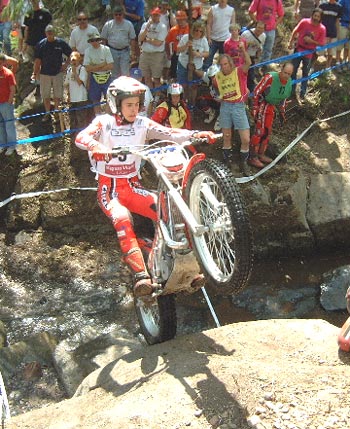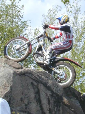 Con este panorama comenzaba el trial el sábado. El sol lucía con fuerza y el calor era considerable, en torno a los 25 grados. Las zonas eran complicadas, pero no como en Gran Bretaña o en Mallorca, sino bastante diferentes, pues los escalones eran considerables y los saltos espectaculares, al estilo indoor, lo que a priori daba cierta ventaja para el campeón indoor Albert Cabestany. De hecho Albert era uno de los únicos 4 pilotos que superaban la primera zona sin penalizar, junto a David Cobos, Adam Raga y Takahisha Fujinami. Lampkin se dejaba un punto, al igual que Freixa, Jarvis, Colley, Colomer, Alcaraz, etc.