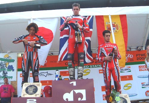 En cuanto a lo deportivo, Doug Lampkin llegaba como máximo favorito tras vencer en las cuatro mangas anteriores. Y es que las previsiones de que este año sería el más disputado no se están cumpliendo, y de nuevo Lampkin se está mostrando muy superior a todos los demás. Muchas esperanzas se tenía en Cabestany, que ya le arrebató el título indoor, pero es que el de Tarragona es un especialista en indoor y en los triales naturales las cosas no son igual. Aún así, hasta aquí no se había bajado del podio y desde luego está ahí. También están fuertes otros como Raga, Fujinami, Jarvis, etc, pero de momento nadie ha podido con el cinco veces campeón del mundo.