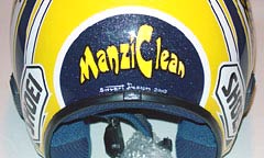 la parte posterior del casco de Josep Manzano figura un logo amarillo con