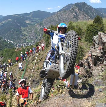 Al igual que en la jornada anterior el día amanecía despejado, y el sol se encargaba de pegar fuerte, haciendo pasar calor a los pilotos, aunque no tanto como el fin de semana anterior en Albaida. Las bonitas zonas de río, junto con las de seco y la indoor volvían a llenarse de público que disfrutaba de el paraiso para el trial que es Andorra, y es que el trial es un deporte muy querido en Andorra, donde seguro que los trialeros son muy bien acogidos durante estos meses, al igual que lo son los esquiadores durante el invierno. Los bonitos paisajes de alta montaña suponían un excelente complemento a la espectacularidad de un trial del mundial.