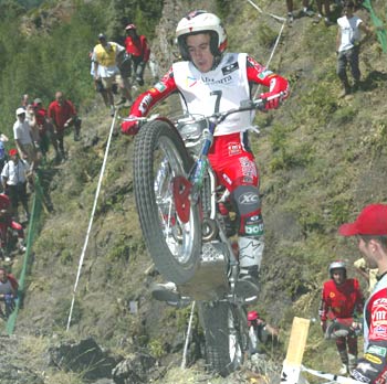 En las zonas 8 y 9 Fujinami se dejaba dos pies, dos pequeños fallos que le hacían ser alcanzado por el dueto formado por Lampkin y Freixa, todo se ponía cada vez más interesante. Raga se dejaba dos puntos en la 10, por lo que ya teníamos a cuatro pilotos empatados a 8 puntos en la cabeza de la prueba a falta de sólo 5 zonas, siendo casi todas ellas fáciles, a excepción de la 12.