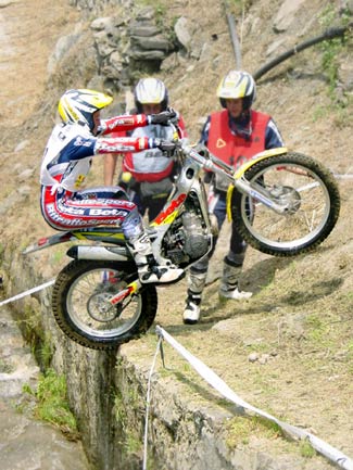 El trial seguía y en las zonas de agua había más posibilidades de cometer errores graves, como le sucedía a Kuroyama en la zona 9, sumando su segundo fiasco consecutivo, lo mismo le sucedía a Jeroni Fajardo, y también pequeños errores para Cabestany y Manzano que se dejaban un punto. Estos dos últimos volvían a fallar en la siguiente Cabes dejándose un punto y Manzano un fiasco. Esto parecía desconcentrar a Cabestany, que en las tres zonas siguientes sumaba tres puntos más alejándose de las primeras posiciones, mientras los pilotos de cabeza seguían fino sin cometer errores.