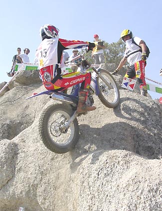 A la salida de la zona 15 se les tomaba el tiempo, y para que veáis lo justo que llegaron algunos os dejamos esta muestra... El tiempo máximo eran 5 horas y media, pues bien, Lampkin paraba el cronómetro en 5 horas, 30 minutos y 10 segundos, con 50 segundos de margen para empezar a penalizar, Fujinami y Cabestany justo en 5:30:40, les sobraron 20 segundos, Jarvis en 5:30:09, Fajardo en 5:29:00, Colomer y Manzano en 5:29:05, Raga en 5:28:05 y otros penalizaban como Freixa (5:31:00) que por sólo 1 segundo sumaba un punto por tiempo, o Kuroyama, que sumaba 3 (5:33:02). Como veis la cosa estuvo pero que muy justa.