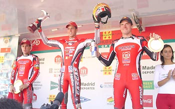 Marc Freixa también era uno de los triunfadores de la jornada, su segundo puesto demostraba su gran estado de forma y su merecido tercer puesto final. Después sesión de fotos con los triunfadores de la jornada, emotiva entrega de trofeos, en la que Fujinami posaba triste, y fiesta por todo lo alto en el camión de Montesa, que además lograba el título de marcas.