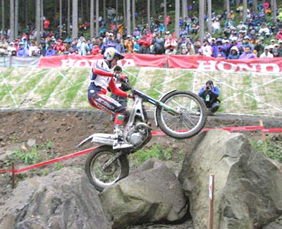 Su éxito no ha estado exento de una apretada lucha, al igual que ayer, con su rival y compañero de equipo Dougie Lampkin (Montesa - HRC), esta vez decidiéndose por número de ceros tras un ampate a 12 penalizaciones.