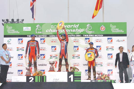 Takahisa Fujinami (Montesa - HRC) se acaba de convertir en el segundo piloto de la temporada 2004 que consigue una doble victoria en el mismo Gran Premio, y al igual que ya hizo Adam Raga (Gas Gas) en Portugal, Fujinami se coloca en lo alto de la clasificación general del mundial gracias a este gran resultado.