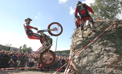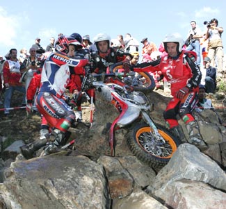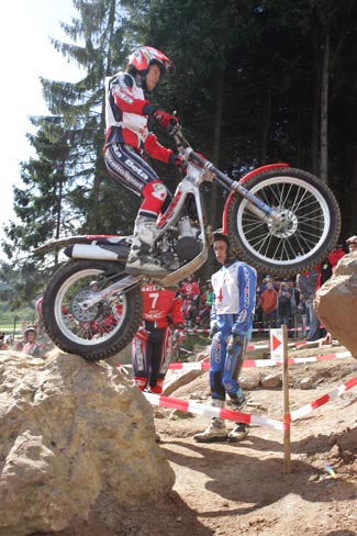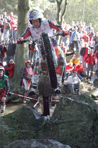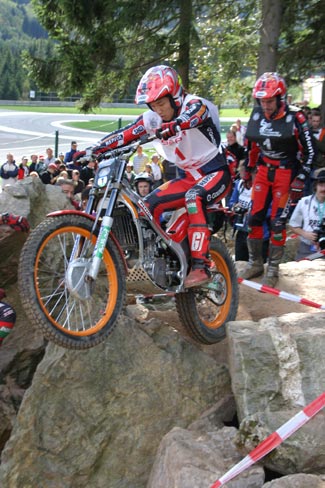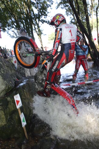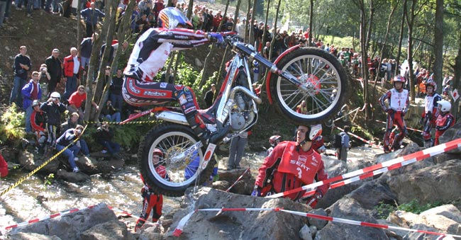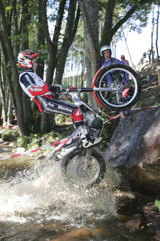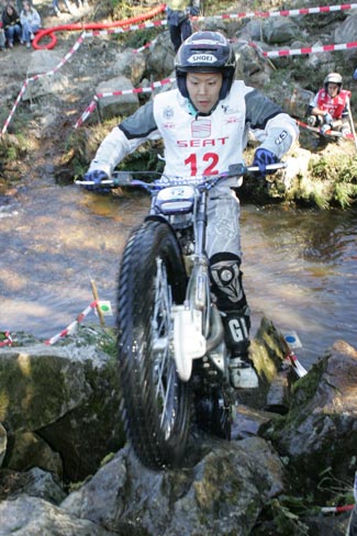 En el segundo giro el sol cambiaba bastante el aspecto de las zonas, secando las rocas y haciendo que se pudiese contar con un extra de adherencia, excepto en las cuatro zonas de agua, claro. Raga y Fujinami seguían enzarzados en su lucha por la victoria, el primero para demostrar que el título de Campeón del Mundo que lograba en Alemania es bien merecido, y el segundo para lograr el subcampeonato por delante de su eterno rival Dougie Lampkin.
