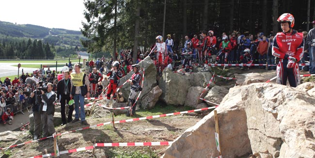El principal atractivo de este trail, aparte de la lucha por el subcampeonato y la siempre emocionante disputa por los puestos de podio, era el escenario en el que se realizaba. No todos los días los trialeros tienen el lujo de poder disfrutar de las instalaciones de un auténtico circuito de competición, y en esta ocasión el placer era máximo, pues el trial tenía lugar en el interior del famoso circuito de Spa-Francorchamps, uno de los más antiguos y bellos del mundo, tanto por su trazado como por su situación y los bosques que lo rodean.