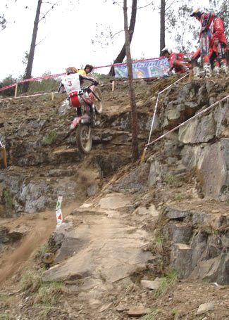 Situada a 65 kms de Coimbra y no demasido lejos de la frontera con España, en Pampilhosa da Serra se reunieron gran numero de trialeros portugeses y sobretodo españoles de la zona de Extremadura. El recorrido contaba con 15 zonas en un recorrido de 8 kilómetros al que había que dar dos vueltas, como viene siendo habitual. La roca con fuertes escalones y vuelos espectaculares se combinaba con bonitas zonas de agua marcadas sobre el río cercano a la pequeña localidad portuguesa. Por lo tanto se podía encontrar todo tipo de terreno, seco y mojado, ya que las zonas no situadas en el río contaban con buena adherencia a pesar de la lluvia caída los días previos a la competición.