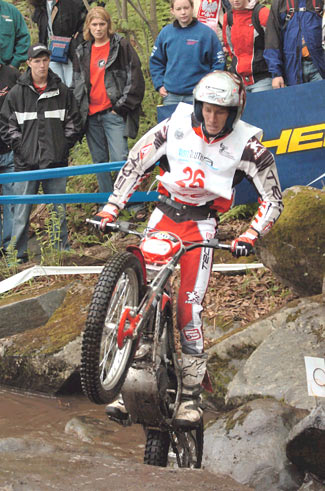 A pesar de las complicadas condiciones, Lampkin aprovechó para marcar las diferencias ya desde la primera vuelta, en un trial de los que a él más le gustan, dificil, embarrado, bajo la lluvia e incluso con "niebla británica". Su superioridad se notaba a la vista, llegando a marcar ceros casi imposibles en zonas donde los demás sólo conseguína fiascos o varios, como en la ocho, en la que sólo se le acercó el uno de Fujinami, o en la siete en la que sólo Cabestany pudo igualar el cero.