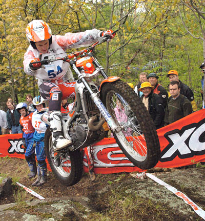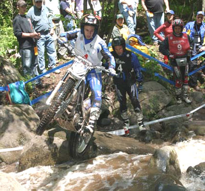 En la segunda vuelta, como os comentamos anteriormente, se tuvieron que anular tres secciones, con lo que las penalizaciones bajaban notablemente y las cosas se ponían aúnmás apretadas de cara a la victoria. El tiempo empeoró aún más y la tormenta arreció con fuerza para complicar aún más el fin de semana. Algunos pilotos tuvieron problemas mecánicos a causa de tanta agua, entre ellos Albert Cabestany, ya que su moto se paró en un par de ocasiones, pero afortunadamente sus mecánicos pudieron repararla rápidamente para que entrase sin penalizar.