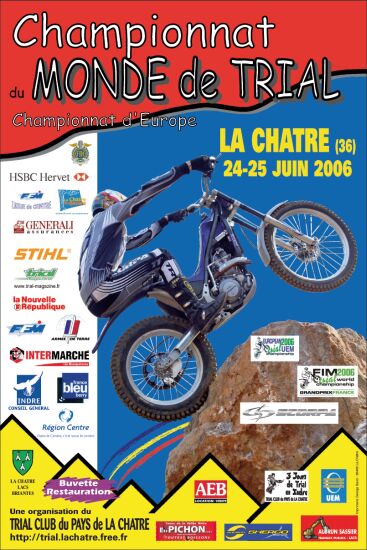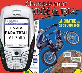 Como en cada prueba del Mundial y el Nacional de trial, ponemos en marcha el sistema de clasificaciones por SMS de Todotrial para que seas el primero en recibir los resultados en la categoría máxima de este Gran Premio de Francia de trial en La Chatre, séptima manga del Mundial 2006, que se disputa este domingo 25 de junio.