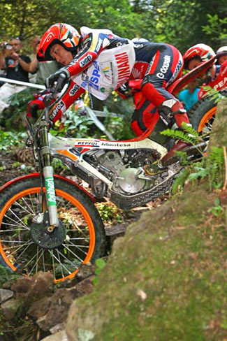 El denso bosque con zonas de río, piedra y laderas de tierra ofreció un gran espectáculo en un paraíso para cualquier aficionado al trial. El tiempo acompañaba en un día soleado y caluroso típicamente veraniego, con unas zonas resbaladizas y selectivas, al igual que en la jornada previa puntuanle para el Europeo, trazadas en el interior del denso bosque.