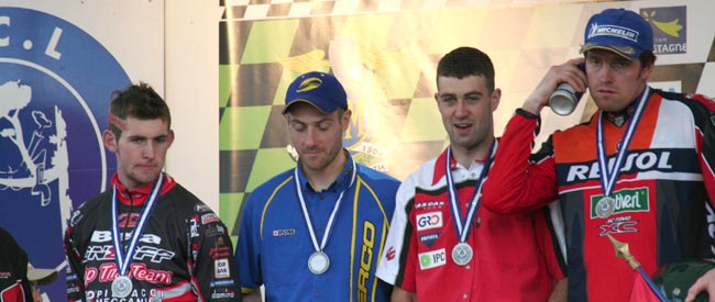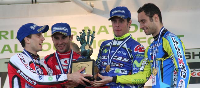 sus medallas y su trofeo individual: Jeroni Fajardo, Toni Bou, Josep Serra,