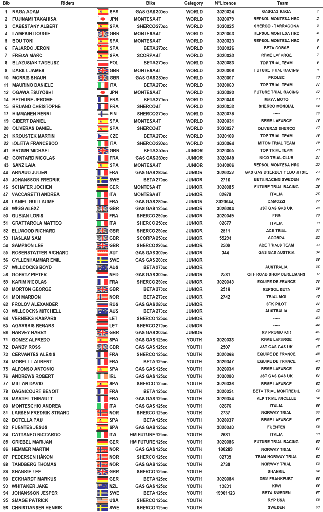 Bou está líder aventajado sobre Raga, con unos confortables 20 puntos de margen sobre Raga, con este duo a su vez bien distanciado del resto de contendientes al título. La lucha por la tercera plaza en el campeonato se mantiene entre Takahisa Fujinami (Montesa HRC), su compañero de equipo Dougie Lampkin y Albert Cabestany (Sherco). Los tres deberán afinar en las próximas pruebas si quieren hacerse con el tercer peldaño del podio final, y para ello deben ser regulares en las cuatro pruebas que quedan.