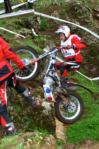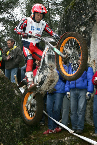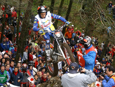 Dougie Lampkin: Ha sido un trial muy difícil, en el que he cometido algunos errores pero que me ha dejado muy satisfecho. Al contrario que muchos pilotos yo me alegré al ver ayer la lluvia, pues sabía que esto podría hacer que las condiciones del terreno fuesen mejores para mi. Gracias a que la organización decidió cambiar las zonas debido al mal tiempo, que si no habría sido un verdadero desastre. Considero importantísimo haber iniciado el mundial con este resultado de podio en un terreno tan complicado, aunque quizás podía haber aprovechado para tener más ventaja en estas zonas mojadas. No ha sido un mal día, pese a que debemos tener cuidado por la seguridad de los pilotos ahora que sólo podemos tener un mochilero. Espero mucho de este campeonato y empezarlo así ha sido muy interesante.