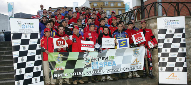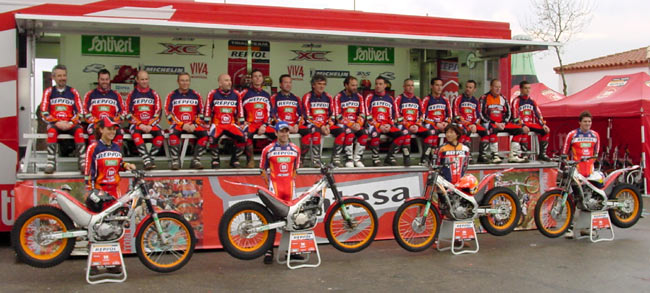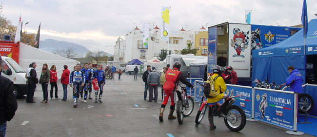 El domingo a las 8:15 de la mañana ya todos los pilotos estaban listos para la foto de familia de inicio de temporada, en la que también estaba Luciano Bonaria, propietario de la principal empresa patrocinadora del certámen mundial y el europeo. Después los demás equipos hacían sus propias presentaciones posando para la prensa, y presentando algunas novedades, como las nuevas monturas entra las que cada vez destacan más las personalizaciones con decoraciones espectaculares, destacando las de los equipos italianos Top Trial team, Future TRW o la moto de Albert Cabestany.