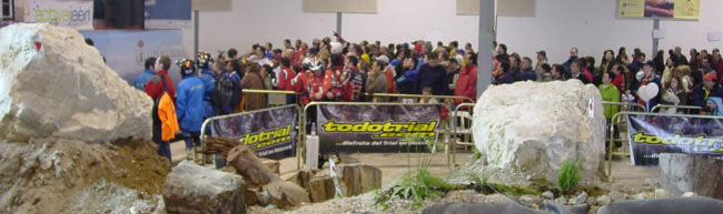 Los comentaristas en la zona indoor y en el centro del gran círculo, que a modo de anfieatro natural que acogía a las zonas 7 a 13, an¡maban al público y comentaban las evoluciones de los pilotos en las zonas, así como anunciaban la posibilidad de recibir las clasificaciones con el sistema de SMS de Todotrial y el sorteo que con el mismo sistema pusimos en marcha entre los asistentes, para el cual Hebo había cedido dos equipos completos de trial.