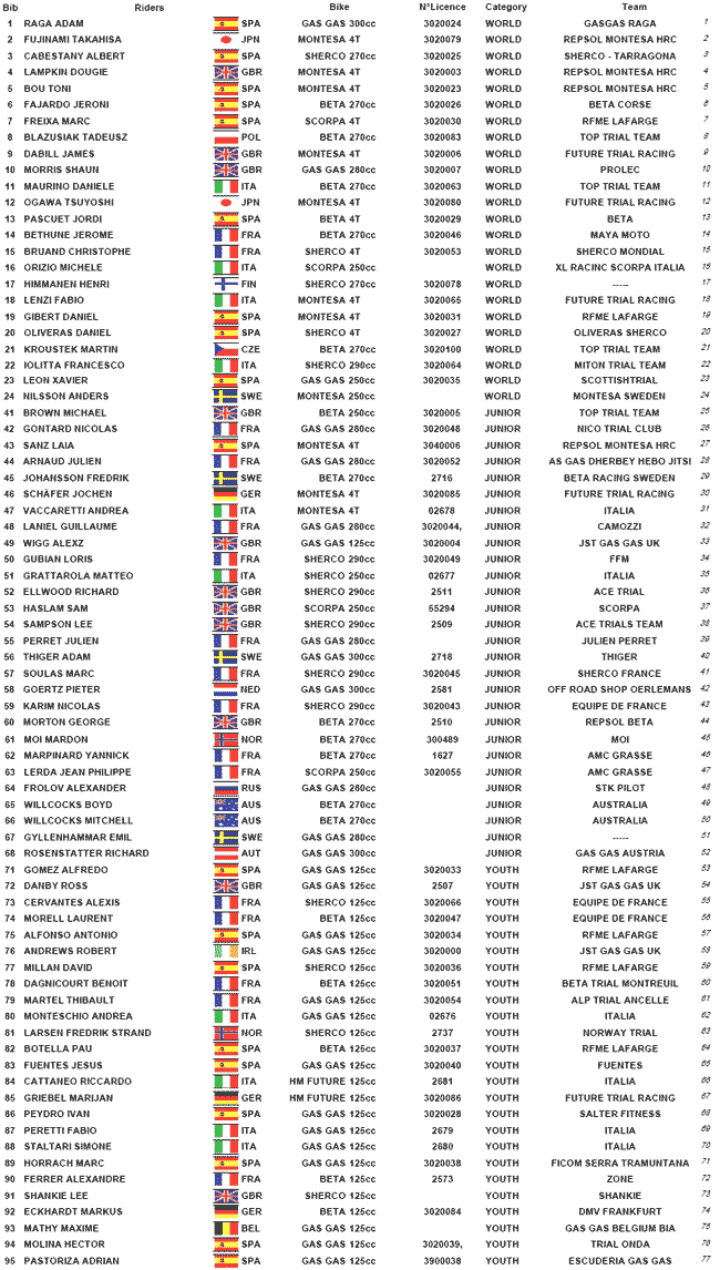 El actual campeón del mundo Adam Raga (Gas Gas) es su más directo rival, pero hasta el momento no ha sido capaz de de detener el dominio de Bou. Los otros dos pilotos del equipo Montesa HRC, Takahisa Fujinami y Dougie Lampkin seguirán intentando estar también en la lucha por la victoria, Lampkin no dudará en intentar repetir el triunfo obtenido precisamente en Francia el año pasado, y que supuso su victoria número 100 en el Mundial.