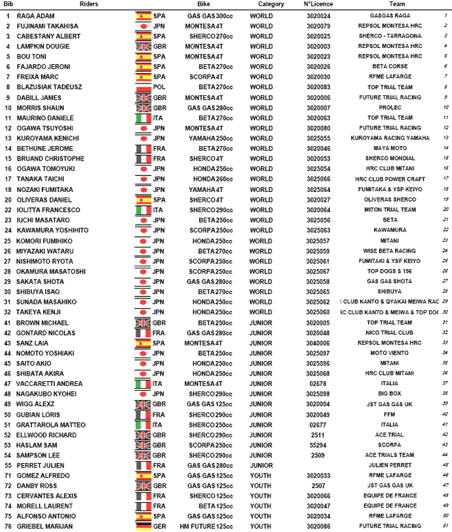Tras los tres primeros pilotos de la clasificación general, hay otros dos que también están hambrientos de lograr su primer éxito del año. El multicampeón británico Dougie Lampkin (Montesa HRC) sigue buscando añadir una victoria más a su record mundial de 100 triunfos en Grandes Premios, mientras que el tarraconense Albert Cabestany (Sherco) necesita urgente algún podio para recargar sus fuerzas y mejorar un inicio de campeonato demasiado pobre para su elevado nivel como piloto, en la anterior edición lo consiguió. En la general Bou es líder con 80 puntos seguido de Raga con 66 y Fujinami con 58.